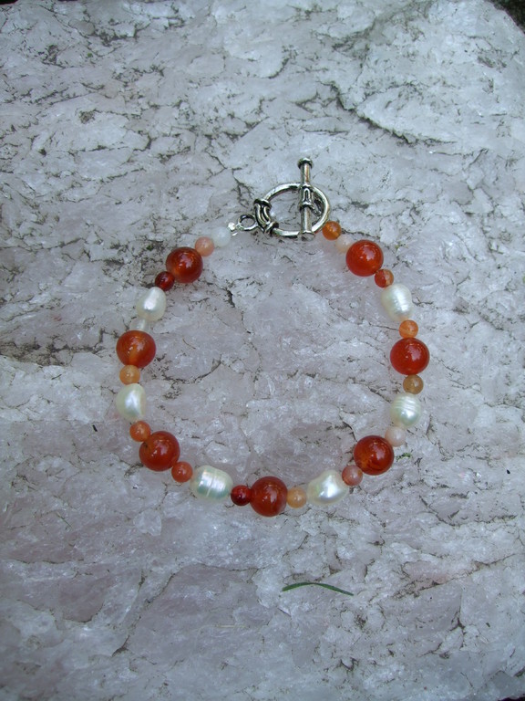 Carnelian, Pearl, Clear Quartz