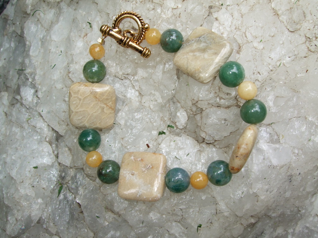 Coral Fossil, Yellow Quartzite, Aventurine